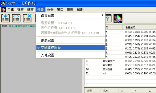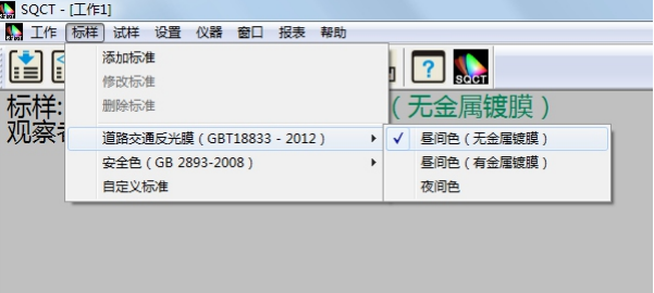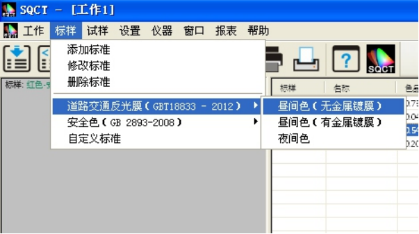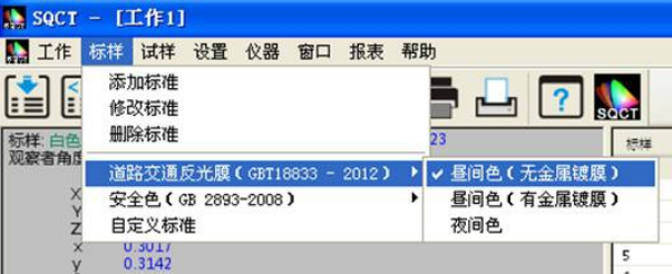 針對國內交通路標使用較多的標準GB/T 18833,SQCT軟件將該標準中的標準色域納入其中,客戶隻需根據自己需要進行選擇即可。