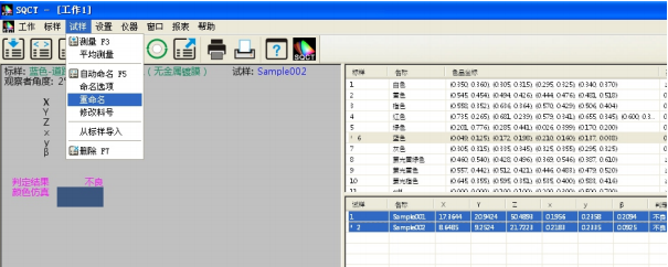 同時可以通過“試樣->重命名/刪除”對測試試樣進行重命名和刪除操作。